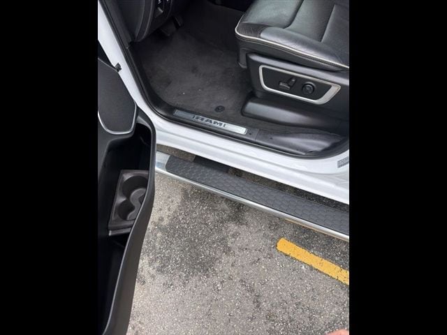 The interior pampers you with leather-trimmed bucket seats, a heated steering wheel, and a state-of-the-art Uconnect infotainment system with navigation and smartphone integration. Rear underseat storage and a 60/40 split-folding rear seat add exceptional utility, making this Ram 1500 as practical as it is premium.